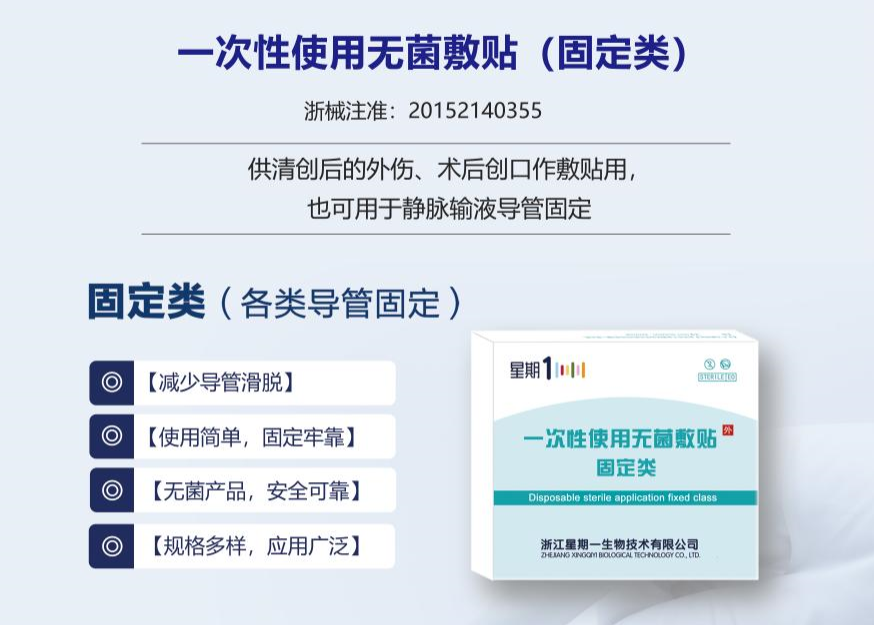 固定类:供手术、外伤创面或留置动、静脉导管贴敷用。